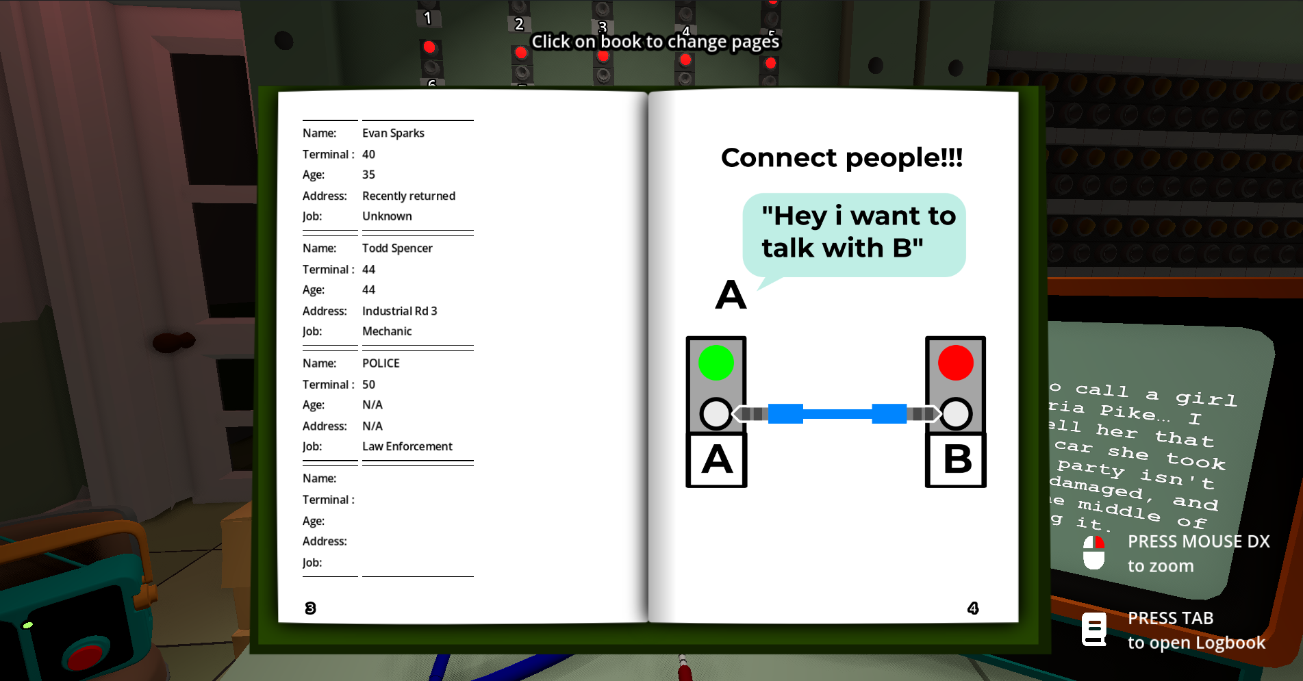 The citizens do not have access to the logbook for security reasons; it is up to you to discover who they are referring to and connect them to the right person.